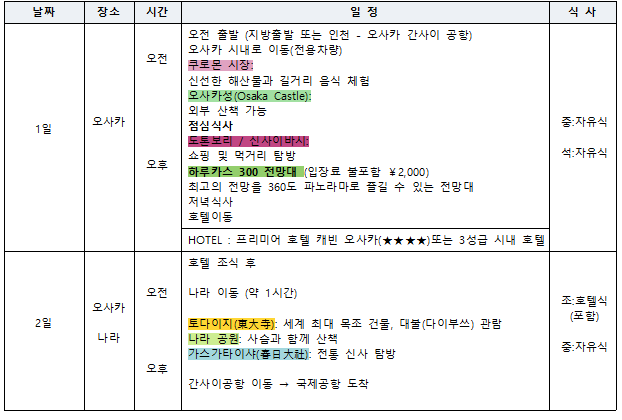 일정표상 불포함된 식사