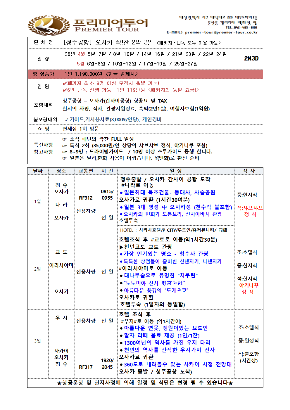 5월 출발 6일 ~ 8일 10일 ~ 12일 17일 ~ 19일 25일 ~ 27일