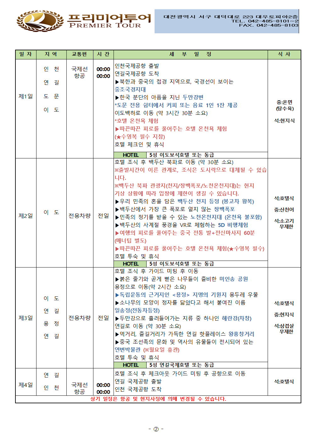 백두산 상품은 항공포함 30~40만 원대 부터 200만원대 까지 다양한 상품이 있습니다.