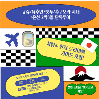 성인 1인기준후쿠오카 시내에서 자유여행하고, 하루만 전용 차량으로 외곽 지역 단독 투어!! 추천 일정을 참고하시고, 원하시는 일정으로 맞춤 구성해드립니다~상품가는 6인 기준 1인 상품가 입니다^^ **예약 시점 호텔요금 변경 될 수 있습니다.** 일정 및 인원 변경 가능하며 카카오톡 "프리미어투어"로 문의 주시면 자세한 상담 가능합니다.